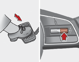 lub krótko nacisnąć pedał hamulca, aby anulować działanie inteligentnego tempomatu.