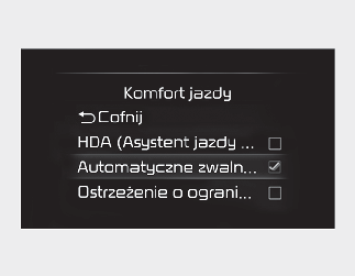 Ustawienia inteligentnego tempomatu wykorzystującego system nawigacji