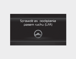Gdy asystent podążania pasem ruchu działa nieprawidłowo, pojawia się komunikat ostrzegawczy „Check Lane Following Assist system” (Sprawdź asystenta podążania pasem ruchu), a w zestawie wskaźników zapala się kontrolka ostrzegawcza .