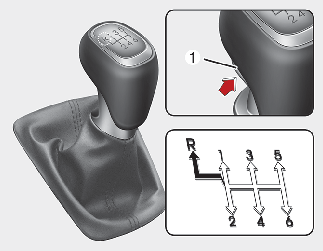 • Jeżeli po całkowitym zatrzymaniu pojazdu trudno jest włączyć bieg 1. lub R (Bieg wsteczny), należy ustawić dźwignię zmiany biegów w położeniu N (Bieg jałowy) i zwolnić pedał sprzęgła. Ponownie wcisnąć pedał sprzęgła, a następnie włączyć bieg 1 lub R (Bieg wsteczny).