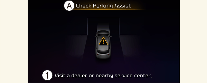 Lorsque l’assistance au stationnement intelligent à distance ne fonctionne pas correctement, le message d’avertissement s’affiche sur l’écran du système d’infodivertissement. Si le message s’affiche, cessez d’utiliser l’assistance au stationnement intelligent à distance et faites inspecter le véhicule par un concessionnaire Kia autorisé.