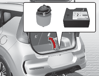 Ремонтный комплект для шин — это временное решение для проколотой шины, после которого мы рекомендуем как можно скорее обратиться к официальному дилеру Kia.