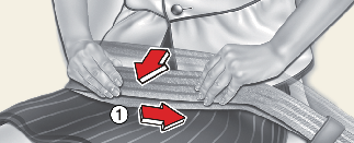 儘量放低腹部安全帶的位置,確定腹部安全貼身繞過臀部,而非腰部。若腹部安全帶的位置在腰部,這會增加碰撞事故中的受傷機率。不要兩臂同時都放在安全帶下方或上方。而是要如圖所示,一隻手臂在安全帶上方,另一隻手臂在安全帶下方。