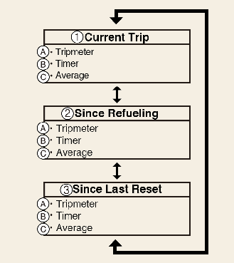 此顯示幕顯示累積行車距離、平均燃油消耗率以及總行駛時間 。