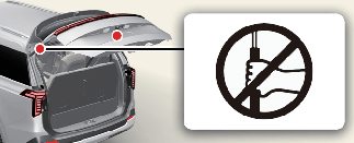 任何時候都不要抓住或握住尾門支撐杆,可能會損壞尾門支撐杆。尾門支撐杆變形可能會導致車輛損壞和人身傷害。