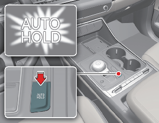 如要在車輛靜止狀態解除自動固定,請在踩下煞車踏板後按下自動固定開關。
