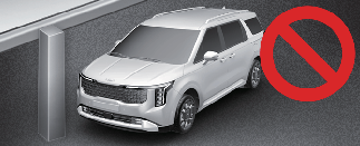 車位附近有狹窄物體、圓柱、方柱或被滅火器等物體包圍的柱子時,遙控智慧停車輔助性能可能會降低或與障礙物發生碰撞。駕駛應手動停車。