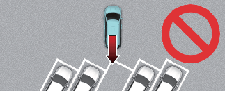 如果使用遙控智慧停車輔助,在一側有車輛的停車格停車時,您的車輛可能會越過停車線以避開停放的車輛。