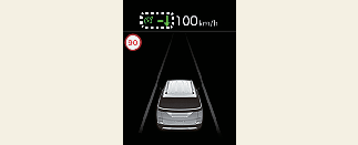 如果手動速限控制輔助或智慧定速巡航系統運作時道路的速限改變,會出現一個向上或向下的箭頭,告知駕駛必須變更設定的速度。此時,駕駛可根據速限使用方向盤上的 (+) 或 (–) 開關變更設定的速度。