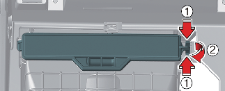 打開雜物箱,拆卸手套箱兩側的止動塊 (1)。