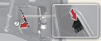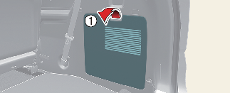 打開行李箱,然後拆下右側的儲存蓋 (1)。