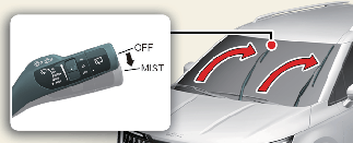 關閉引擎後,將雨刷開關在 20 秒內移至單次 (MIST) 位置,並保持該開關 2 秒鐘以上,直到雨刷片處於完全升起的位置。