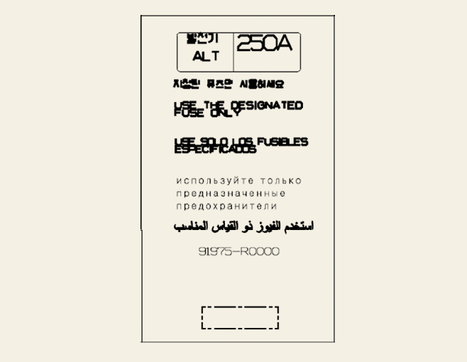 本手冊內的所有保險絲盒說明並不完全適用於您的車輛。其在印製時準確無誤。檢查您車輛的保險絲盒時,參考保險絲盒標籤。
