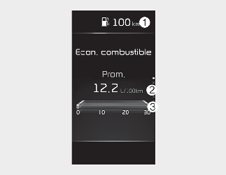 Margen de consumo de combustible: 0 ~ 99,9 km/L, L/100 km o MPG