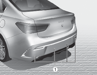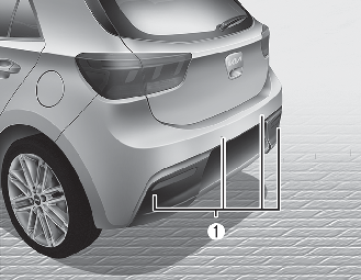 La advertencia de distancia de estacionamiento marcha atrás alertará al conductor mediante un indicador o sonido de advertencia si se detecta una persona, animal u objeto en cierto rango desde el sensor ultrasónico trasero (1) cuando el vehículo se mueve hacia atrás a baja velocidad.