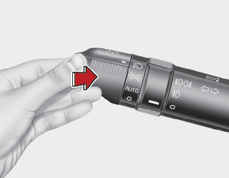 Para encender los faros de las luces de carretera, empuje la palanca hacia fuera cuando el faro esté encendido.