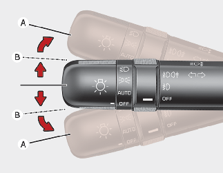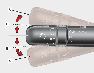 Para señalizar el cambio de carril, mueva la palanca del intermitente ligeramente y manténgala en posición (B). La palanca regresará a la posición de desconexión cuando se suelte.