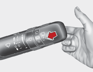 En la posición O (Off), tire ligeramente de la palanca hacia usted para pulverizar líquido lavaparabrisas sobre el parabrisas y para activar 1-3 barridos del limpiaparabrisas.