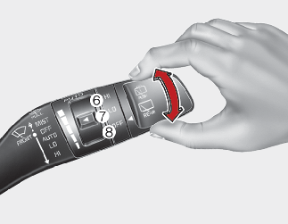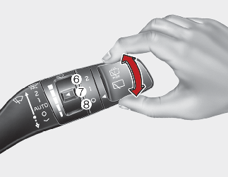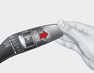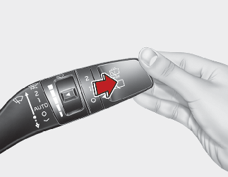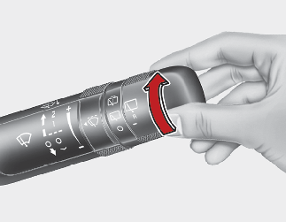 Empuje la palanca alejándola de usted o gire el interruptor de la palanca del limpiaparabrisas dos veces hacia arriba para pulverizar líquido lavaparabrisas en la luna trasera y para activar los limpiaparabrisas traseros 1~3 ciclos. El funcionamiento del pulverizador y del limpiaparabrisas continuará hasta que suelte la palanca.