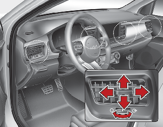 También se puede ajustar la dirección del aire desde estos difusores empleando la palanca de control del difusor, tal y como se indica.