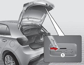 Su vehículo está equipado con una palanca de apertura segura de emergencia del portón trasero colocada en la parte inferior del portón. Cuando alguien se quede encerrado por error en el maletero. El portón trasero puede abrirse como sigue: