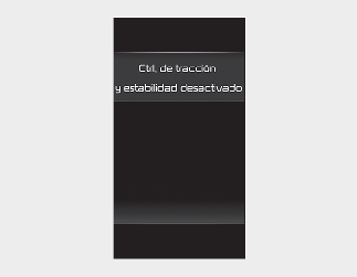 Pulse brevemente el botón ESC OFF (el testigo indicador ESC OFF se ilumina y aparece un mensaje). En este estado, la función de control del motor no está operativa. En otras palabras, la función de control de la tracción no está operativa, solo está operativa la función de control de los frenos.