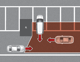El aviso de colisión con tráfico cruzado trasero podría detectar vehículos que pasen por delante cuando estacione hacia atrás en una plaza de aparcamiento con un muro o una estructura en el área trasera o lateral. Si esto ocurre, el aviso de colisión con tráfico cruzado trasero podría advertir de manera innecesaria al conductor.