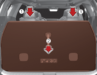 Pull down the headrests of the 4th row seats as far down as possible (1).