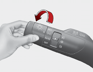 To operate the lights, turn the knob at the end of the control lever to one of the following positions: