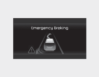 When the vehicle is stopped due to emergency braking, the warning message will appear on the cluster. For your safety, the driver should depress the brake pedal immediately and check the surroundings.