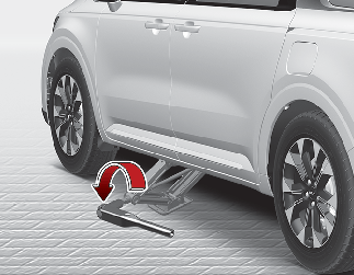 Lower the vehicle to the ground by turning the wheel nut wrench counterclockwise.
