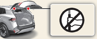 No aplique agua a alta presión directamente sobre el botón exterior de apertura/cierre del portón trasero eléctrico. El portón trasero podría abrirse accidentalmente.