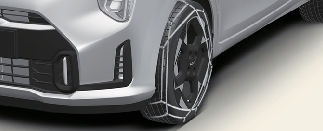 • Ef ökutækið er með hjólbarða af stærðinni 185/55R15 eða 195/45R16 skaltu ekki nota snjókeðjur; þær geta skemmt ökutækið (hjól, fjöðrun og skrokk).