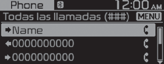 Solo se accede al historial de llamadas después de descargar el historial de llamadas cuando se conecta el teléfono móvil al sistema.