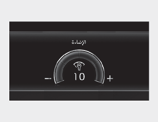 يتغير سطوع إضاءة لوحة العدادات بالضغط على زر التحكم في الإضاءة ("+" أو "-") عندما يكون مفتاح الإشعال أو زر ENGINE START/STOP (بدء تشغيل/إيقاف المحرك) على الوضع ON (تشغيل)، أو عند تشغيل المصابيح الخلفية.