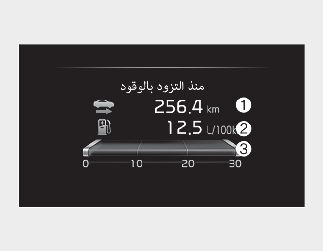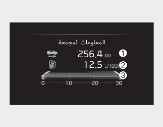 بعد التزود بالوقود بأكثر من 6 لترات والقيادة بسرعة أكبر من 1 كم/ساعة، سيتم إعادة ضبط خيار Since Refueling (منذ التزود بالوقود) تلقائيًا إلى الوضع الافتراضي.