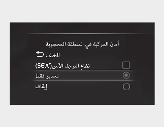 عندما يكون مفتاح الإشعال أو زر ENGINE START/STOP (بدء تشغيل/إيقاف المحرك) في الوضع ON (تشغيل)، حدد "User Settings (إعدادات المستخدم) ← Driver Assistance (مساعدة السائق) ← Blind-Spot Safety (أمان المركبة في المنطقة المحجوبة)" من شاشة LCD أو نظام المعلومات والترفيه لتحديد استخدام كل وظيفة من عدمه.