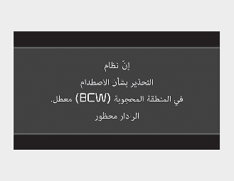 قد لا يعمل نظام التحذير من التصادم في المنطقة المحجوبة لمدة 3 ثانية بعد بدء تشغيل السيارة أو بعد تهيئة أجهزة رادار الجانب الخلفي.