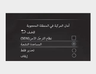 في حال تحديد خيار Off (إطفاء)، فسيتوقف نظام المساعدة في تجنّب الاصطدام في المنطقة المحجوبة.