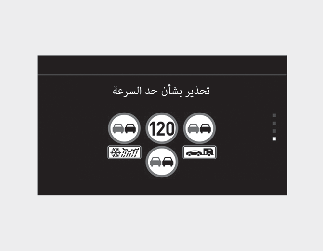 يوفر تحذير حد السرعة الذكي معلومات إضافية عن لافتات الطريق جنبًا إلى جنب مع حد السرعة. قد تختلف معلومات علامات الطريق الإضافية المقدمة حسب البلد.