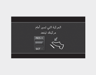 عندما يكون نظام التحكم الذكي في ثبات السرعة قيد التشغيل، تقف سيارتك خلف السيارة الأمامية متى توقفت. تظهر الرسالة على لوحة العدادات في غضون 3 ثوانٍ بعد الإيقاف وستكون الوظيفة في وضع الاستعداد.