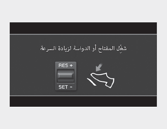 استخدم دواسة الوقود وحدد السرعة المحددة المناسبة. افحص للتأكد من أن أحوال الطريق تسمح بتشغيل التحكم الذكي في ثبات السرعة على نحو آمن.