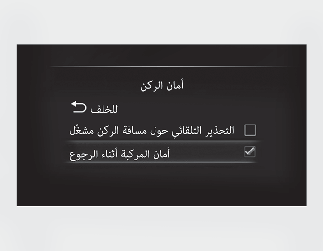 في حال تحديد خيار "Off" (إيقاف تشغيل)، سيتم إيقاف تشغيل نظام المساعدة على تجنب الاصطدام أثناء الرجوع.