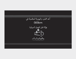 المنخفض جدًا ستظهر الرسالة "Refill Urea in 000 km or vehicle will not start" (أعد التزود بيوريا خلال 000 كم وإلا فلن يتم تشغيل