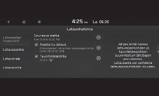 Voit asettaa päivän ja ajan, jolloin akkua ladataan, sisäilmaston lämpötilahallinnan, paikkaan perustuvat latausvalinnat ja muita toimintoja.