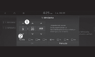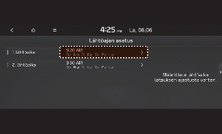 Lähtöaika: Säädä aika, jolloin haluat käynnistää auton.
