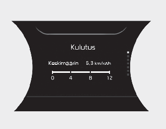 Osamatkamittari-tila näyttää tietoja auton ajoparametreista, kuten keskimääräinen energiankulutustiedot, osamatkamittarin tiedot ja auton nopeus.