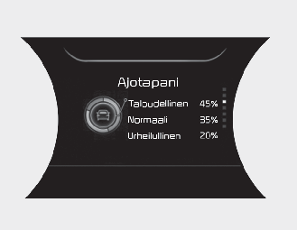Tämä näyttö osoittaa, onko kuljettaja ajotapa taloudellinen, normaali vai aggressiivinen.