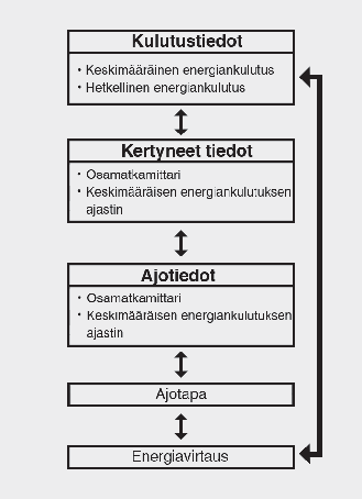Energiankulutuksen keskiarvo lasketaan kokonaisajomatkasta ja suurjänniteakun kulutuksesta energiankulutuksen viimeisen nollauksen jälkeen.