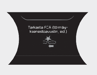 Kun etutörmäyksen välttämisavustajassa on toimintahäiriö, jarrutuksen kontrolli ei toimi, kun havaitaan törmäysriski edes muissa, normaalisti toimivissa, jarrujärjestelmissä.